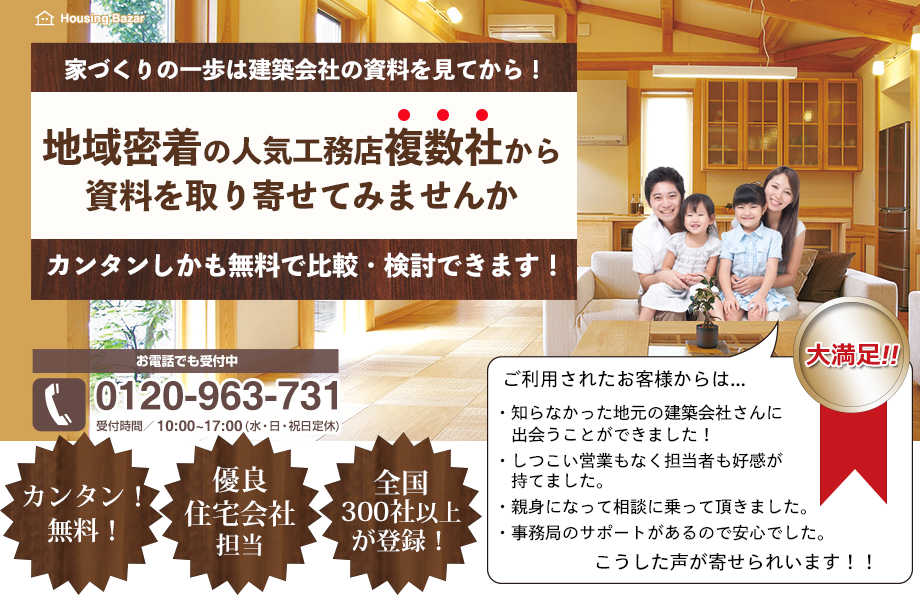 全国の自然素材住宅・木の家づくりを得意とする工務店をまとめて比較できる便利なサービスです。
